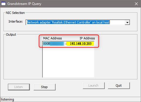 - Run the executable file, select the correct network interface on the PC, and press “Listen”.