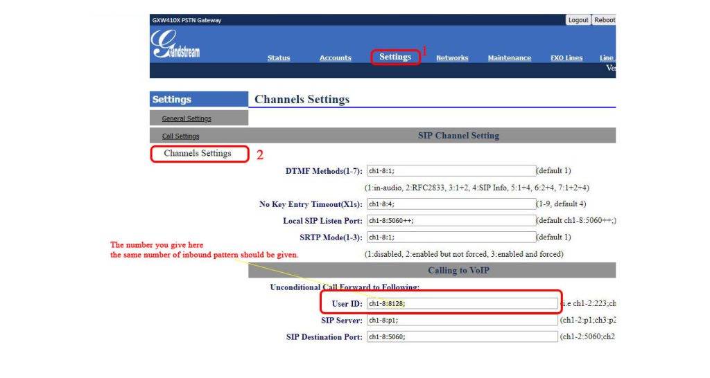 Setup 1.2: Set User ID on Grandstream FXO Gateway