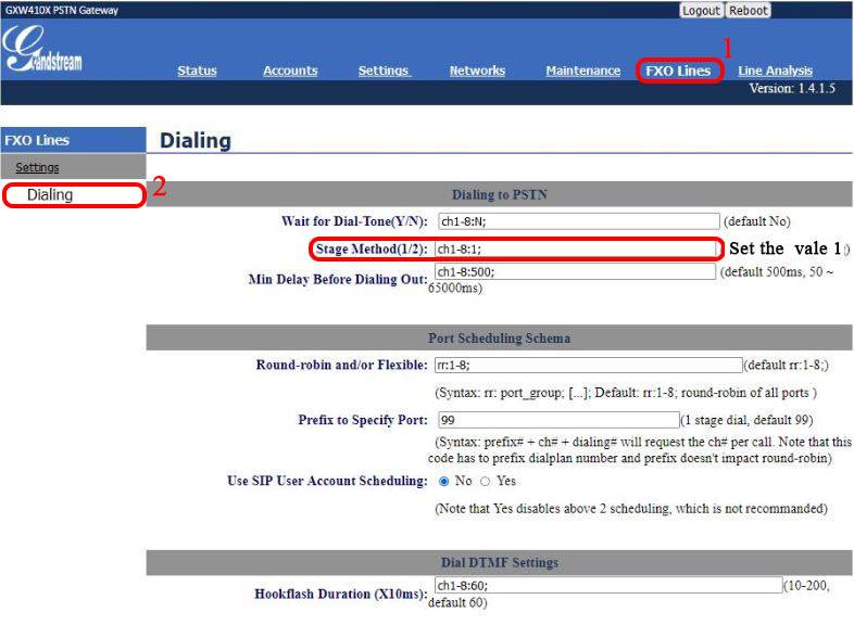 Setup 1.3: Set dialing to PSTN on the Grandstream FXO Gateway