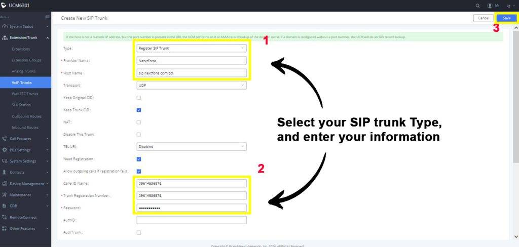 Step 3: Create Your Grandstream SIP Trunk