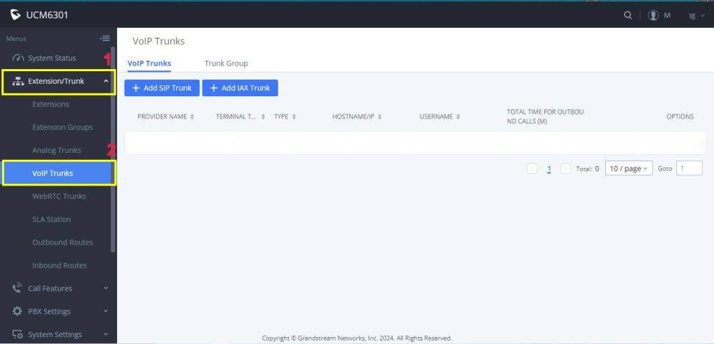 Login to your UCM Server and Go to VOIP Trunk on the Extension/Trunk Manu option